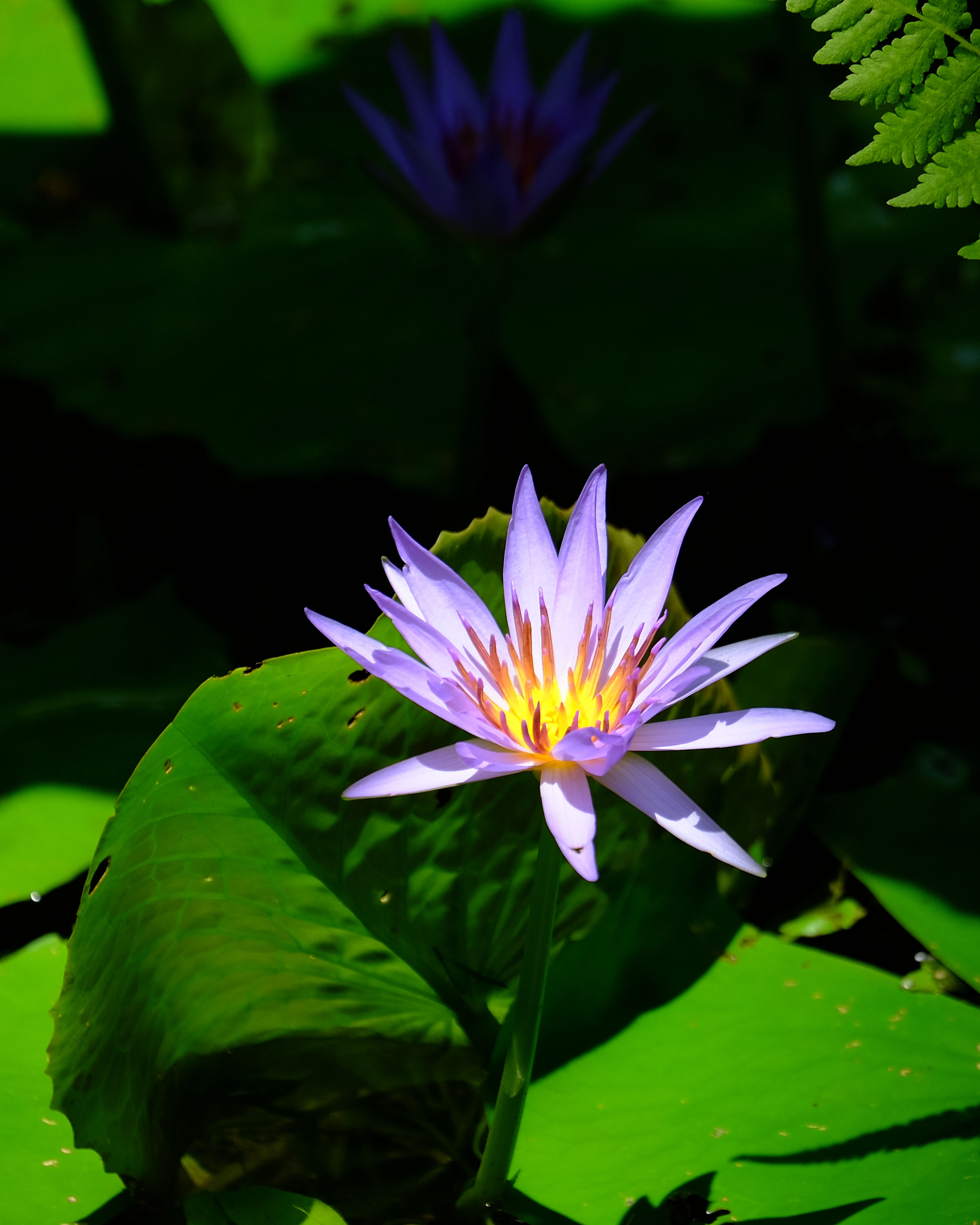 Not long after the woodpecker, we made our way to the part of the gardens where my favorite of the bronze statues are. There is a small little pond under the statue with a beautiful purple lily.